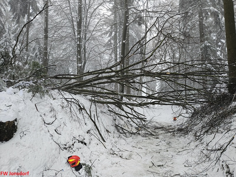 Durch den schweren Schnee auf den Bäumen kann es jeder Zeit passieren, das Äste oder sogar ganze Bäume unter der Schneelast zusammenbrechen. Passen sie bitte bei Spazierengängen im Wald darauf auf, und versuchen am besten nicht alleine unterwegs zu sein.